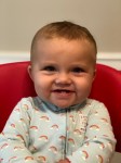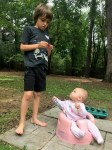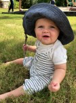 I’m started to get a hang of being a baby and I am developing a few likes and dislikes. One thing I definitely like is sitting in the grass. One thing I definitely do NOT like is how it tastes. But I pretty much sit wherever someone puts me, just like a potted plant.